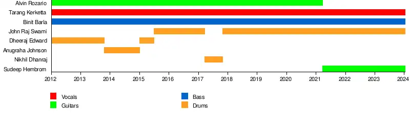 Later in the year 2015, Dheeraj again decided to leave the band. So they finally decided on having a permanent drummer who will be committed towards the band. During this time, the band practised with various drummers from Ranchi, Jamshedpur and even Kolkata but ultimately settled for John Raj Swami, who was a drummer for a local metal band called Virus. The band was already familiar with the playing style of John as they had shared the stage in various competitions and music festivals across India. The growing confusion over who would continue in the band as a drummer was finally sorted out. This gave the band ample time to practice and compose new songs. John is quite popular amongst the audience and other fellow musicians because of his aggressive style of drumming along with going shirtless when performing on-stage.