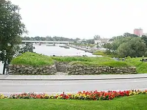 The work on the railway began in 1884, and in 1885 it reached Falkenberg. Two different stretches were suggested; one longer, northern, which would pass through the upper parts of Storgatan and Marknadsgatan; one short, southern, which would pass Tullkammaregatan and Storgatan. The latter alternative was cheaper and was chosen. As a consequence, the railway would pass through the remains of the old fort. The railway proved to be an economic success. When it was nationalised in 1895, it gave the town a return of 58 725 Swedish kronor on a 130 500 kronor investment.