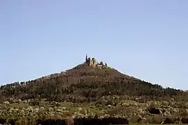 Hohenzollern is a mountain, 855 m (2,805 ft), of Baden-Württemberg, Germany. It is located in Zollernalbkreis. Hohenzollern Castle is located on its top. The mountain is an outlier, about 1 km (0.62 mi) north of the Swabian Jura.