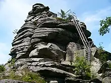 The Hoher Stein is a rock formation at the northeastern foot of the Bergkopf mountain, part of the Waldstein ridge in Germany's Fichtel Mountains.