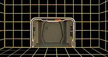 ![]() A vacant holodeck on the Enterprise-D; the arch and exit are prominent. |