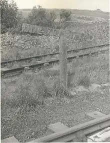 By the 1870s Hopton Incline's winding engine had given 40 years' service and was life-expired. During that time locomotive power had moved on, therefore in 1877 Hopton incline's chains and engines were removed, after which the incline became a conventional adhesion railway; trains ascended the bank under their own power and descended using their own brakes. The more westerly line on the incline fell into disuse and was lifted at some time between 1889 and 1903.[11] In 1886 an inspector recommended the gradient be eased to allow greater loads, but nothing happened until 1903[12] when the trackbed at the foot of the incline was raised to ease the slope, which northbound trains approached at the gently downhill gradient of 1 in 1056. The top was also shaved to ease a short final stretch to 1 in 470. From the bottom the amended slope became progressively steeper in stages: 1 in 60 for 200 yards (180 m), 1 in 30 for 75 yards (69 m), 1 in 20 for 100 yards (91 m), then 200 yards (180 m) at 1 in 14, easing to 1 in 470 before levelling off.[2][13] The approach was gently downhill, but it included what in railway terms was a fairly sharp bend of 20 chains (400 m) radius, 160 yards (150 m) before the incline foot.