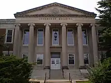 A library/gym building was constructed on campus in 1893, which survived the Great Fire of 1912;[5][6] the building, which stood where Tydings Hall now stands, was razed in 1958.[7] A new library building, called Shoemaker Library (now known as the Shoemaker Building), was constructed in 1931 (named for Samuel M. Shoemaker, chairman of the Board of Regents from 1916 to 1933), and served as the university's main library until the construction of McKeldin Library in 1958.[8][9]