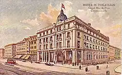 Contemporary hotel management in Istanbul started in the second half of the 19th century, as the Orient Express extended its non-stop service from Paris to Istanbul on 1 June 1889 (with Istanbul becoming one of the two original endpoints of the timetabled service of the Orient Express) and the city became, as a result, a tourist destination. In 1892, a group of local investors, in partnership with the Wagons-Lits company, opened Hotel Pera Palace in Beyoğlu district, which was designed by the famous Levantine architect of Istanbul, Alexander Vallaury. Also in 1892, The Grand Hotel de Londres was opened by two local partners, L. Adamopoulos and N. Aperghis, in the place of the former residence of the Glavany family in Beyoğlu.[1] Shortly afterwards, a series of hotels, including Bristol Hotel (1893) and "Hotel M. Tokatlıyan" (1897), were opened in the same district.