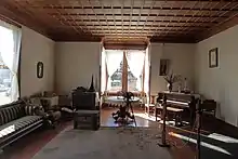 At the same time that Hovander was planning and designing the farmhouse, he was also planning the barn.[20] While the farmhouse is representative of Swedish architecture, Hovander's design for the barn was influenced by the barn designs he saw in the United States.[21] Hovander disliked the common Swedish barn design of the time, as they were typically small, and was instead impressed with the size and loft design of barns that he had seen in the United States.[22] He designed the barn as a large space with a high ceiling, and hired men from Bellingham to build it.[22]