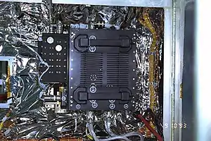 The two initial, primary computers on the HST were the 1.25 MHz DF-224 system, built by Rockwell Autonetics, which contained three redundant CPUs, and two redundant NSSC-1 (NASA Standard Spacecraft Computer, Model 1) systems, developed by Westinghouse and GSFC using diode–transistor logic (DTL). A co-processor for the DF-224 was added during Servicing Mission 1 in 1993, which consisted of two redundant strings of an Intel-based 80386 processor with an 80387 math co-processor.[48] The DF-224 and its 386 co-processor were replaced by a 25 MHz Intel-based 80486 processor system during Servicing Mission 3A in 1999.[49] The new computer is 20 times faster, with six times more memory, than the DF-224 it replaced. It increases throughput by moving some computing tasks from the ground to the spacecraft and saves money by allowing the use of modern programming languages.[50]