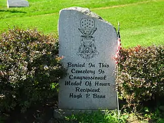 Captain Hugh P. Boon (July 28, 1831 – January 14, 1908) was an American soldier who fought in the American Civil War. Boon received the country's highest award for bravery during combat, the Medal of Honor, for his action during the Battle of Sayler's Creek in Virginia on 6 April 1865. He was honored with the award on 3 May 1865.[1][2]