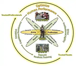 Only through our ability to optimize human performance, building resilient Soldiers, adaptive leaders, and cohesive teams, will we maintain the ability to prevent conflict, shape the international environment, and win decisively.[3]