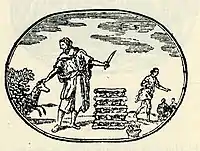 All but three of the hymns were provided with a corresponding woodblock illustration. The original illustrations either represented the scene of the hymn or a symbolic representation of the hymn. However, later editions of the work sometimes included illustrations that did not match the corresponding hymn, which was the fault of "a general deterioration of standards in book production".[15] With such possibilities, it is hard to justify an exact relationship between any particular hymn and illustration.[16]