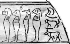 The right portion of these characters are hieratic and appear to have been copied from Joseph Smith Papyrus XI.[1]