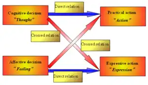 - affective behavior, conducted by cognitive and motivational components;[40]