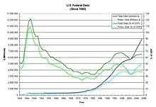 U.S. federal debt from 1940 to 2008, the year the documentary was released.