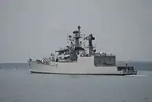 The design and construction of the ship is entirely Indian, and is a modification of the Godavari-class frigate.[1] She is fitted with an array of modern sensor suites and matching weapon systems.