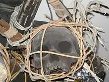 Pala Antu, a headhunting trophy skull of the Ibans, photographed in an Iban longhouse in the Betong Division in Sarawak, Malaysia. The skull is about 100 years old.