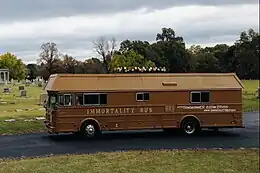 The Immortality Bus is a 1978 Wanderlodge that has been made to appear as a 38-foot brown coffin.[1]