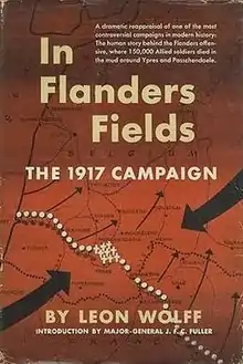 In Flanders Fields: The 1917 Campaign is a history of the Third Battle of Ypres by Leon Wolff, published in 1958, with an introduction by Maj. Gen. J. F. C. Fuller, CB, CBE, DSO.[1] In 1960, Readers Union Ltd published an edition produced by Longmans, Green & Co. for sale to its members only. [2] In 1963, a re-edition of the book was included in the Time-Life Reading Program, with an additional introduction by B. H. Liddell-Hart.[3] In 1979, a Penguin Books edition was published "with minor emendations". Based on this, in 2003 Cambridge University Press published a "Folio Society" edition.