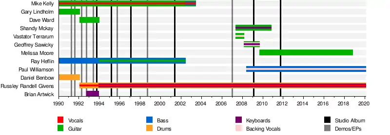 - Mezzadurus (Chris Gamble) – vocals, bass (1995–2002)