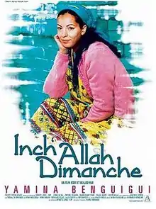 Inch'Allah Dimanche (Arabic: إن شاء الله الأحد, English: Sunday God Willing) is a 2001 French/Algerian movie by Yamina Benguigui about the life of an Algerian immigrant woman in France. Though this is Beguigui's first feature-length fiction film it is largely descriptive of her family's experience moving to France and the struggles for autonomy Algerian women continue to face even today. The film won a variety of international awards, including the 2001 International Critics' Award at the Toronto International Film Festival.[3] Although Benguigui was urged to change the name of the film after the September 11 attacks, she chose to keep the original title, a portion of which is in Algerian Arabic. This film explores the complexities of immigration and the role of women in Algerian society.