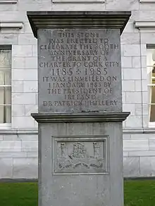 Memorial beside Cork City Hall, unveiled by President Patrick Hillery on the opening day of Cork 800