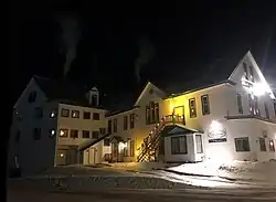 The Island Falls Opera House is a historic multipurpose building at the junction of Old Patten Road, Burleigh Street and Sewall Street in the center of the small town of Island Falls, Maine. Built in 1894, the building included retail, performance, and residential spaces, and is a type of building that was once common and is now rare in rural Maine. It was listed on the National Register of Historic Places in 1984.[1] Until recently the building sat vacant and unused. Since the sale of the building in December 2020, the Opera House has seen much cleanup and repair activity.