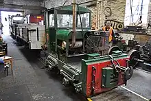 There are two small Simplex locomotives on the railway, one of which is based at Port Erin Station for daily shunting purposes in season; the other can be found occasionally on the Manx Electric Railway and has a driver's cab and Railway Company crests applied to its cab sides; No. 24 was repainted in September 2018 and received a fleet number and painted-on name for the first time, while No. 25 carries fleet details on its bonnet in yellow with crests on the cab sides, the name appearing only in vinyl on the landward side. It was fitted with a replacement cab in 2022 with the same appearance as the original but remains with a hand-cranked starter whereas No.24 is fitted with an electric starter. In the past both units have seen periodic use on the electric railway, with No.24 being used as part of a number of cavalcades in and around Laxey Station. No.25 spent a period in an all-over yellow livery with red chevrons and is still colloquially referred to by members of staff as "the yellow one" despite having been repainted green.