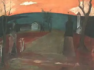 The painter László Mednyánszky was Farkas’ first art teacher in Budapest.[1] After receiving an education from the painters of the Nagybánya artists' colony[2] he moved to Paris in 1912, entered the painter's circle of the Cubists of the Académie de La Palette and became friends with André Salmon who later wrote a monograph about him.[3] In 1914 he joined the Austro-Hungarian army as a lieutenant. He was captured and held as a prisoner of war in Italy.