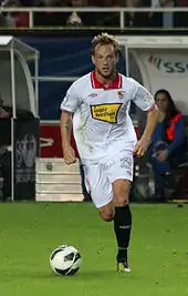 Ivan Rakitić (Croatian pronunciation: [ǐʋan rǎkititɕ];[4][5] born 10 March 1988) is a Croatian professional footballer who plays as a midfielder for La Liga club Sevilla.