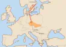 The discussion about different aspects of the crash was reopened on 8 January 2009, when German news magazine Tagesschau featured a report by investigative journalists Peter Hornung and Pavel Theiner.[18][19] Allegedly based on newly obtained documents mainly from the Czech Civil Aviation Authority, they concluded that it was "extremely likely" that the plane had been mistakenly shot down only a few hundred meters above the ground by a MiG fighter of the Czechoslovak Air Force, having been mistaken for an enemy aircraft while attempting a forced landing.[10][20] All the evidence suggesting that the plane was destroyed at high altitude by explosives placed in a suitcase would be therefore have been forged by Czechoslovak secret police.