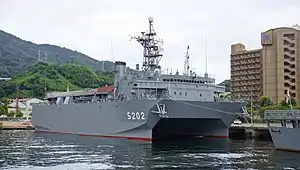 - ↑ Dominguez, Gabriel (3 February 2020). "Japan launches third Hibiki-class ocean surveillance ship". Jane's Information Group.