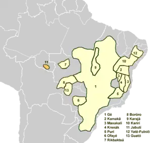 The Yabutian or Jabutian languages are two similar moribund languages of southern Rondônia, Brazil, namely Arikapú (Maxubí) and Djeoromitxi (Yabutí/Jabotí). They are members of the Macro-Je language family.
