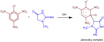 Creatinine was first synthesized in vitro by Ivan Horbaczewski in 1885.[5] One year later, Jaffe's research was published in the paper Über den Niederschlag, welchen Pikrinsäre in normalem Harn erzeugt und über eine neue Reaction des Kreatinins.[6] Jaffe had noticed that, when mixed in a sodium hydroxide (NaOH) solution, picric acid and creatinine formed a reddish-orange color and needle-like crystal precipitate.[5][7][8] By using zinc chloride in a process known as the Neubauer reaction, and then performing the Weyl's test, a colorimetric reaction using sodium nitroprusside (SNP), he determined that the precipitated compound was a double salt of the solution.[8] Although he found the amount of precipitate directly proportional to the creatinine concentration, he also noted that the reaction was highly nonspecific and could be observed with many other organic compounds.[5][7]