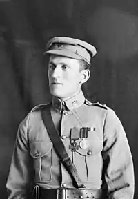 After returning to Australia in late 1901 Rogers was commissioned as a lieutenant in the 6th Battalion, Australian Commonwealth Horse, and embarked for South Africa again on 19 May 1902. Following the conclusion of the war his battalion returned to Australia, and he received his Victoria Cross from the acting governor-general, Lord Tennyson, on 18 September 1902 at Government House, Melbourne.[6] He had previously been mentioned in despatches.[1] Rogers then unsuccessfully sought to obtain a commission in the Australian Military Forces and, after buying and selling a property near Yea, Victoria, returned to South Africa where he worked as detective with the Cape Police until February 1904. On 25 April 1907, Rogers married Ethel Maud Seldon at Portland, Victoria and they later had two sons.[1]