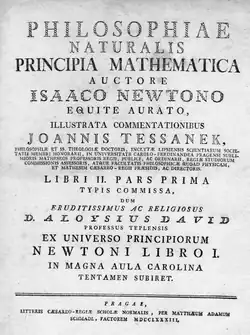 Tesánek studied at a gymnasium (school) in Prague and later at Faculty of Philosophy of Charles University. In 1745, he became a Jesuit and studied mathematics, physics and astronomy under Joseph Stepling, a student of Ignatz Mühlwenzel. Stepling introduced Tesánek to the works of Isaac Newton.[1] After finishing under the Faculty of Philosophy, Tesánek continued with study of theology. He was then ordained a priest and became professor of physics at Charles University. Later, he taught mathematics at the University of Olomouc. Two years later he returned to Prague to assume a professorship of high mathematics at the University. He remained at the University after the dissolution of the Jesuit order in 1773 and assumed the position of head of the Department of Mathematics and Physics in 1778. Tesánek is known for his many writings on the science of the day, helping to spread knowledge of scientific findings throughout Europe.[2]