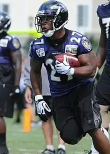 Raymell Mourice Rice (born January 22, 1987) is an American former football running back who played for six seasons with the Baltimore Ravens of the National Football League (NFL). He played college football for the Rutgers Scarlet Knights, receiving first-team All-American honors. He was selected by the Ravens in the second round of the 2008 NFL Draft. During his career, Rice was named to three Pro Bowls and was a member of the team that won Super Bowl XLVII. He is second in franchise rushing yards, rushing attempts, and rushing touchdowns, and is third in the franchise in combined touchdowns.