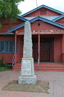 - ↑ "Jandowae Memorial Hall". Monument Australia. Archived from the original on 8 December 2020. Retrieved 8 December 2020.