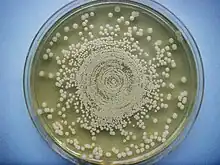 In 1931, Hinton's father developed a Medical Laboratory Techniques course, which was open to women, although that profession was then generally not open to women.[13] Jane Hinton worked in Harvard's laboratories at the time she co-developed the Mueller–Hinton agar with John Howard Mueller.[3] This agar was a medium developed to isolate the Neisseria bacteria that caused gonorrhea and meningogoccal meningitis.[14] Mueller and Hinton discovered that starch within the agar helped aid bacterial growth and prevented bacteria toxins from interfering with antibiotic testing.[14] It became the most widely used culture medium for Neisseria. In the 1960s, tests indicated its suitability for detecting whether bacteria are susceptible to antibiotics.[2] The Clinical and Laboratory Standards Institute, which establishes the best international laboratory standards, adopted the Kirby–Bauer technique using Mueller–Hinton agar as the gold standard for antibiotic testing.[14]