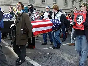 ![]() Anti-war protesters carrying coffins at the counter-inaugural protest in Washington, D.C. | |||