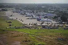 President Préval and government ministers used police headquarters near the Toussaint L'Ouverture International Airport as their new base of operations, although their effectiveness was extremely limited; several parliamentarians were still trapped in the Presidential Palace, and offices and records had been destroyed.[85] Some high-ranking government workers lost family members, or had to tend to wounded relatives. Although the president and his remaining cabinet met with UN planners each day, there remained confusion as to who was in charge and no single group had organized relief efforts as of 16 January.[86] The government handed over control of the airport to the United States to hasten and ease flight operations, which had been hampered by the damage to the air traffic control tower.[87]