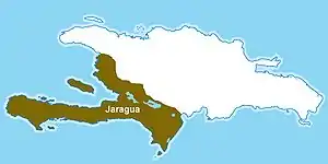 The cacicazgo of Jaragua, also written as Xaragua,[1] was one of the five chiefdoms in the island of Hispaniola, stretching across the southwest; delimited to the north by the cacicazgo of Marién, to the south by the Caribbean Sea, to the east by the cacicazgo of Maguana, and to the west by the Jamaica Channel. Jaragua emerged as the union of two previous cacicazgos, Zui and Yáquimo.
