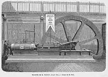 In 1867 the Maison Farcot received the Grand Prix pour mérite hors ligne at the International Exposition of 1867 in Paris. Almost all the machines they exhibited were designed by Joseph Farcot.[3] They exhibited two coupled horizontal steam engines at the exhibition each of which delivered 80 horsepower.[5] They won a gold medal for their horizontal steam engines in the class of motors, generators and mechanical devices.[6] The report of the jury noted that the Farcots had installed two 100 horsepower Woolf pumps which took water from the Seine at the quai d'Austerlitz in Paris and delivered it along a line of 5 to 6 kilometres (3.1 to 3.7 mi) to the reservoirs at Ménilmontant, 50 to 60 metres (160 to 200 ft) higher up.[7]