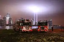 Jersey City's fire department was the only New Jersey department to receive an official call for assistance during the September 11 attacks, with hundreds of department personnel assisting in the Ground Zero cleanup effort.[6] Among the first responders who perished on that day was Fire Department of Jersey City dispatcher Joseph Lovero, who was hit by a piece of debris. The Fire Department of Jersey City named its fireboat after him.[7]