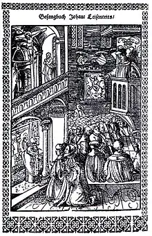 Leisentritt is known for the publication of the 1567 hymnal Geistliche Lieder und Psalmen der Alten Apostolischer recht und warglaubiger Christlicher Kirchen (Spiritual songs and psalms of the old apostolic true believers of Christian churches). It is regarded as a substantial hymnal of the Counter Reformation, containing 250 hymns with 181 melodies. Several come from Protestant sources. 70 new songs are probably written by Leisentritt.[1][4]