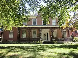 The house was built in the post-Colonial or American Federal style with Italianate elements.[2][5][6][7] It is constructed of local walnut timber, locally made brick, and Kickapoo Valley limestone, supplemented with lumber, lime, and glass from Chicago.[2] Ornamental ironwork was shipped from France in 1852.[2][6] It is the oldest home still standing in Peoria.[3] In 1834, the area only had seven frame houses and about 30 log cabins.[2] The brick mansion overlooks the Illinois River from the East Bluff[2] and was referred to by locals as the "Mansion on the Hill" or "the Manse".[6][8]