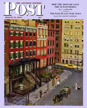 He opened a studio in New Rochelle, New York, which had long been a colony for illustrators, including such artists as Frederic Remington and Norman Rockwell. Within a few years, his three Kansas City Art Institute friends Harris, Clarke and Lyon had moved to New Rochelle to share a studio with Falter and launch their careers as freelance illustrators. Falter recalled, "Rockwell was our inspiration then. I didn't meet him until years later. We would hear that Rockwell had been out on the street. and we'd all rush out and hunt for him. If they'd tell us that he had looked in a shop window, we'd look in the same window trying to absorb what he looked at by osmosis."[3]