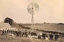 20 feet (6.10 m) Simplex geared wind engine on a 32 feet (9.75 m)[9] hexagonal steel tower | ![]() |