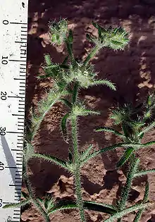 Johnstonella angustifolia is a species of wildflower in the borage family[2] known by several common names, including Panamint catseye and bristlelobe cryptantha. This plant is native to northern Mexico and the southwestern United States from California to Texas, where it grows in desert scrub and woodland.