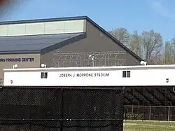 Morrone Stadium was built in 1969, and was at the time known as Connecticut Soccer Stadium. Before that, UConn soccer was largely unknown and unpopular. However, at the urging of newly hired soccer and lacrosse coach Joe Morrone (whose name the stadium now bears), a new stadium was built for the team.[5] The stadium has had a capacity as high as 8,574 but it was restructured in 1994 and again in 2002 to seat 5,564. In 2008, it was again restructured to seat 4,407. In 2009, Morrone Stadium was expanded slightly to 4,500.[6] As of the 2015 season the current capacity is 5,100.[7] In 1997, the board of trustees voted to change the name of the stadium to honor Morrone, who had just retired after coaching soccer for 28 years at UConn. The stadium was officially renamed in 1999 to Joseph J. Morrone Stadium.[8] In 2008, the Division of Athletics proposed to build a new basketball practice facility on the site of Morrone,[9] but that was later changed and it will now be built where the vacant Memorial Stadium now is.[10]