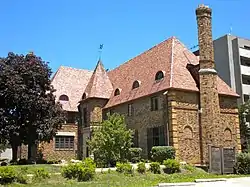 In 1905, Royer designed his own house, located in Urbana at 801 W. Oregon Street, that he would live in for the rest of his life. It is an eight-bedroom mission style house, thought to be inspired by the "California Building" at the St. Louis World's Fair in 1904.[4] Next to this house, Royer designed a house to be built in 1923 for his mother-in-law, in English cottage revival style.[5] Both of these houses are protected by the city of Urbana as part of the Royer Historic District.[6]