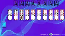 The Tableau is filled with ten piles containing four cards each that build down in suit, e.g. 8♥, 7♥, 6♥, 5♥...