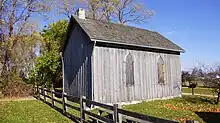 The third historic building situated on the property is the Pioneer Church, a one-room, single-storey board and batten building designed in a Carpenter Gothic style; typical of churches found in rural Ontario during that period.[9] Although the Pioneer Church dates back to the 1850s, the building was not erected by the inhabitants of the Dawn settlement, and was originally located 70 kilometres (43 mi) away in Wheatley, Ontario as an Anglican and Presbyterian church.[9] The Pioneer Church was moved to the Uncle Tom's Historic Site during the 1960s, in order to provide a visual representation of the original church built in the Dawn settlement. The Pioneer Church was selected by the museum as it closely resembled the original Dawn church in design, material, and size.[9] The original church saw multiple uses in addition to being a church, although it was destroyed in a fire during the early 20th century.[9] However, two objects from the original church were preserved and fitted into the Pioneer Church, the oak pulpit and organ.[9]